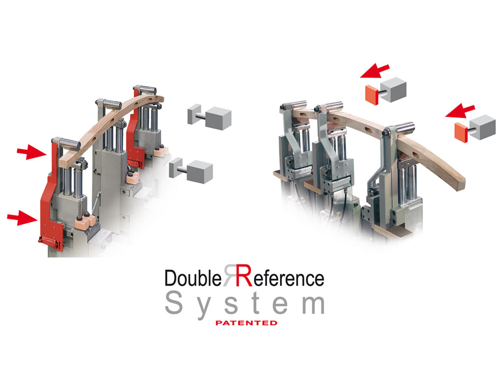 BACCI DOUBLE.JET — уникальный двухстанционный центр для одновременной обработки двух деталей. Сдвоенная архитектура (6 + 6 осей) позволяет работать параллельно над разными проектами, минимизируя простой. Подвижные платформы с пневмозажимами и наклонными референтными упорами обеспечивают надёжную фиксацию, а автоматические загрузчики-бункеры на линейных направляющих с циклом 3,5 с гарантируют непрерывный рабочий процесс. Система T2+2 в исполнении с перекрёстными шпинделями увеличивает пропускную способность на сложных контурах, а монолитная стальная рама сохраняет геометрию при высокой динамике.