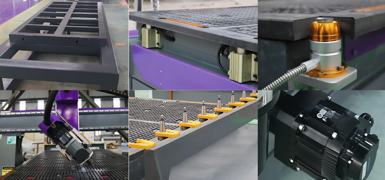 NAGIN 4AXIS SERIES — инновационная линейка 4‑осевых фрезерных центров с автоматической сменой инструмента, разработанная для максимальной производительности и точности. Дополнительная A‑ось поворачивает шпиндель до 180° для обработки нескольких сторон детали за один проход, что исключает повторную установку и ускоряет выполнение сложных проектов. Ультра‑жёсткая конструкция портала и ISO 30‑шпиндель мощностью 9 кВт обеспечивают стабильность резки при высоких скоростях, а встроенная система автоматической смазки и однокнопочное обслуживание снижают эксплуатационные затраты и время простоя. Машина идеально подходит для изготовления мебели и декоративных элементов, музыкальных инструментов, художественных резных форм и прототипов в материалах от дерева и композитов до пластиков и алюминия.