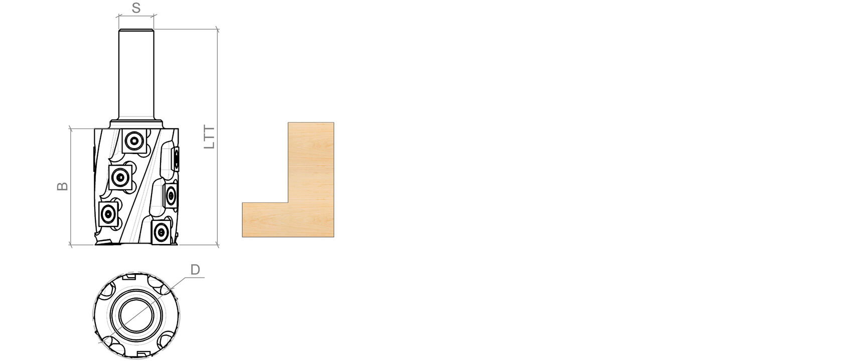 The A0474 cutter is equipped with replaceable 14×14×2 mm tungsten carbide knives, designed for precise, chip-free edge profiling on hardwood, softwood, MDF, and chipboard. Its lightweight aluminum body on a steel arbor ensures durability and easy knife replacement.