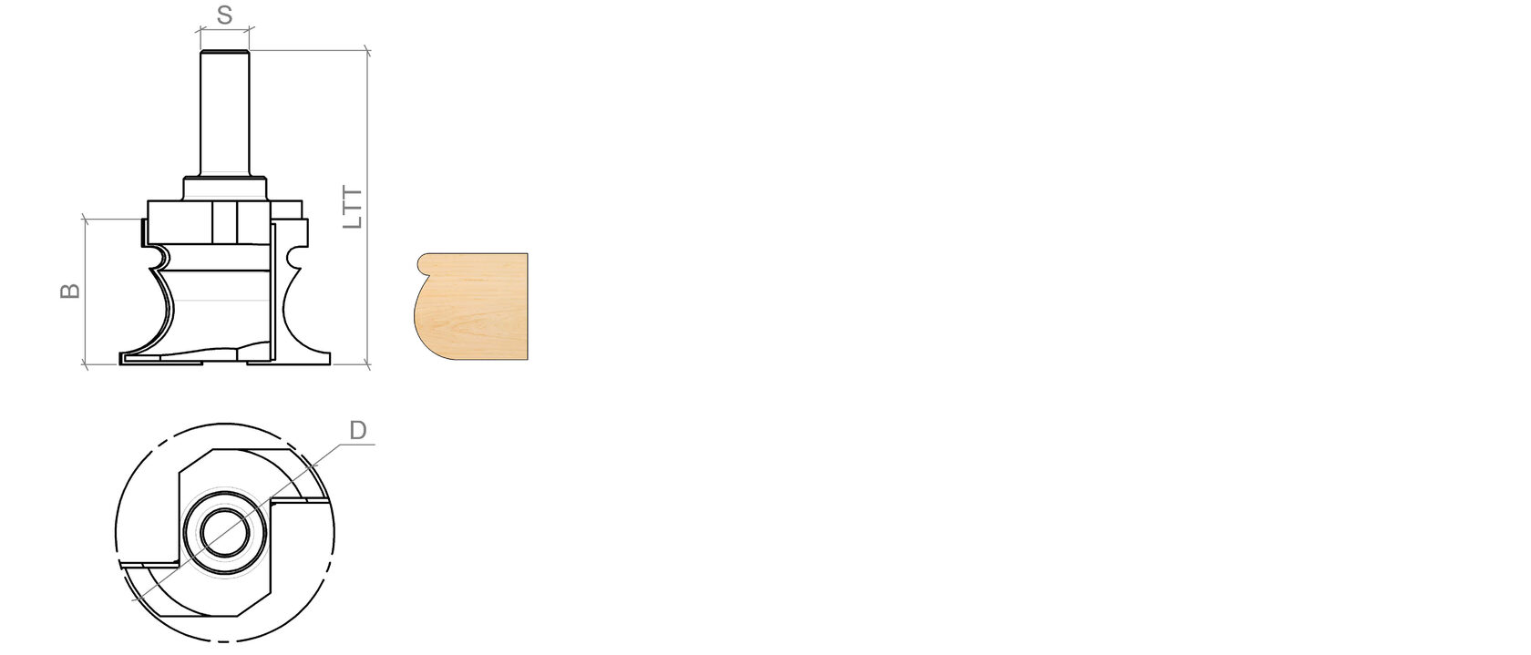 Assembly cutter with two integral HW (tungsten carbide) knives, 2 mm thick. Designed for selective profiling of simple shapes (straight edge, chamfer, quarter-circle) on all types of wood, chipboard, MDF, and composites. Quick knife change via ISO-30 arbor simplifies setup.