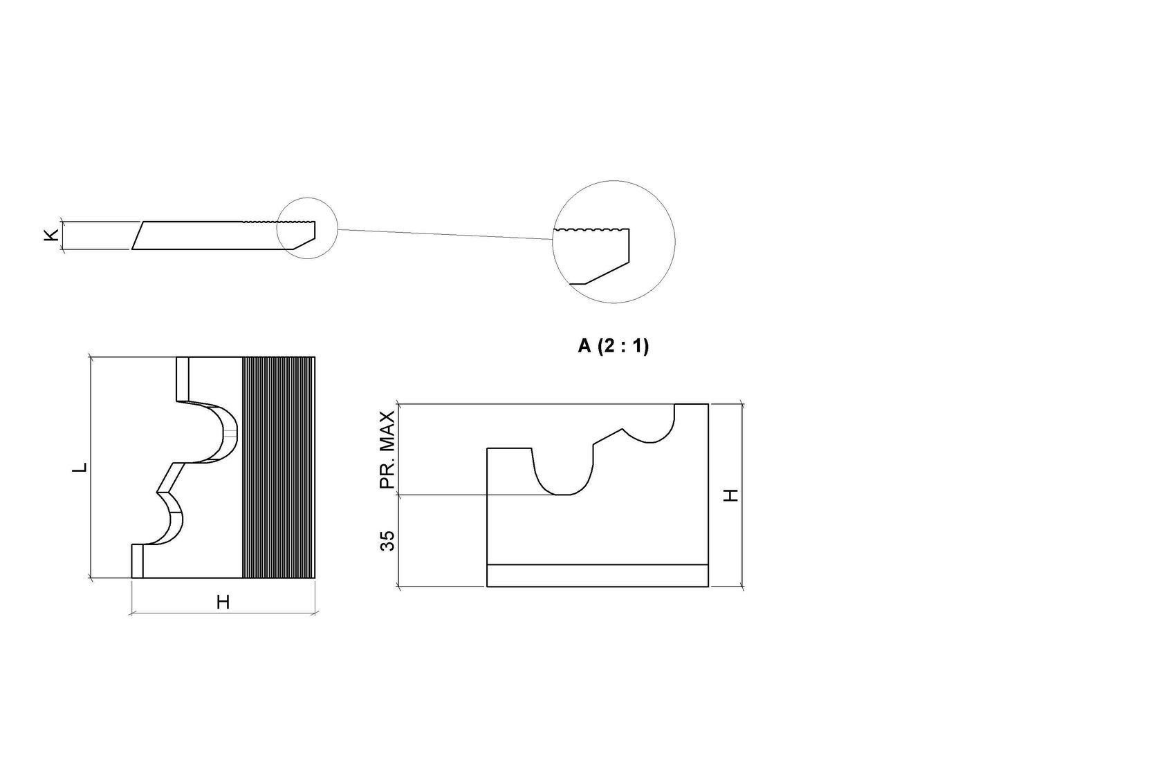 Профильные HSS-ножи с серрейторным (зубчатым) задним ребром, предназначенные для точного профилирования натуральной древесины (твёрдой и мягкой). Шаг серрейтора — 1,587 мм. Для правильного подбора ножей длина L должна соответствовать ширине головки гребёнки, а вынос H не должен превышать диаметр головки более чем на 38 мм